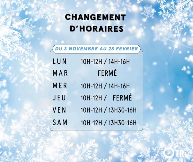 Du lundi 3 novembre 2025 et jusqu’au samedi 28 février 2026 inclus, OTRI passe à l’heure d’hiver !
